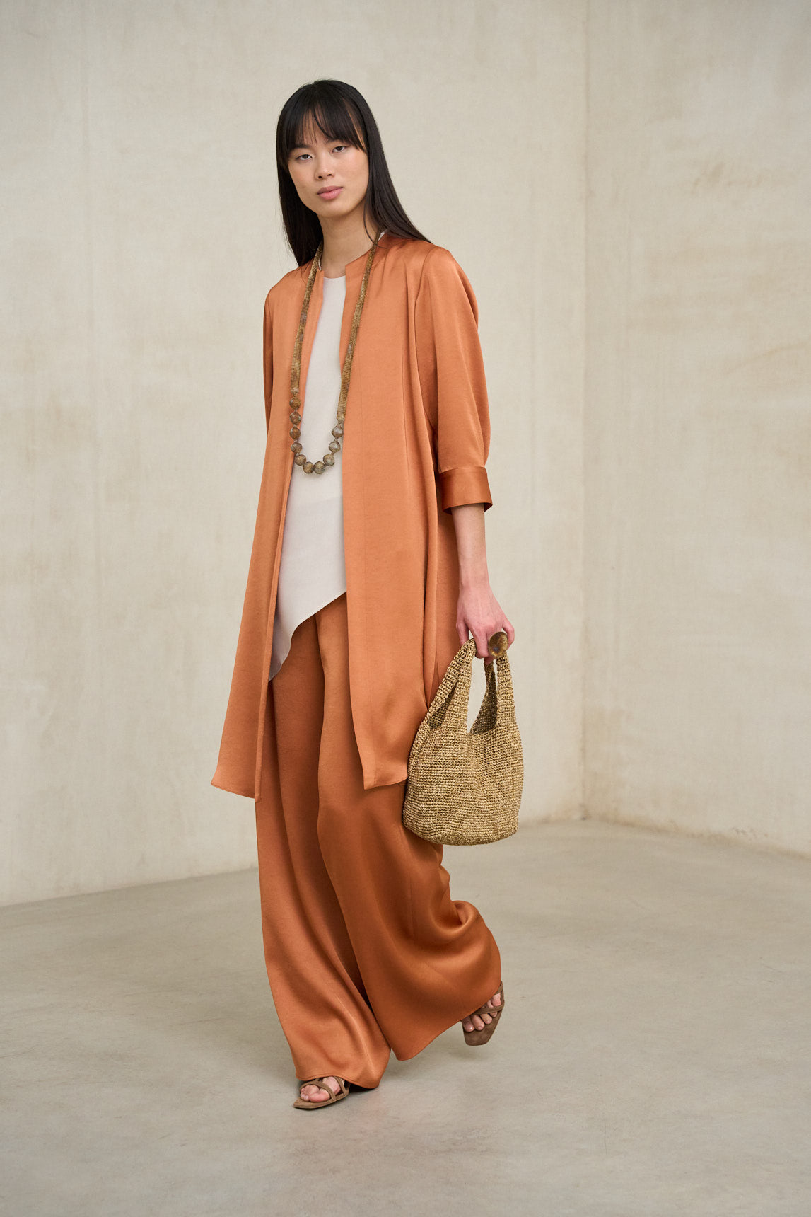 - Tejido fluido y suave, en color crudo, que aporta elegancia y frescura.