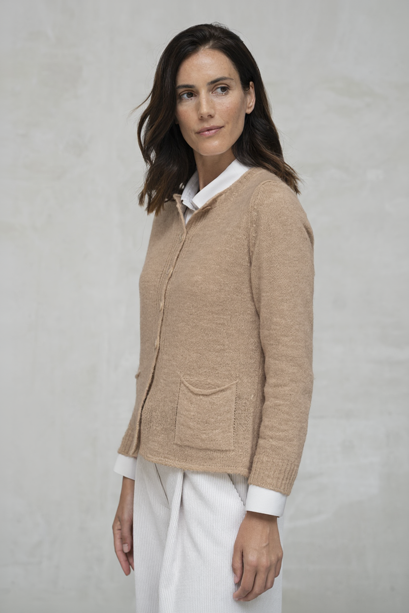 - Cárdigan de punto ligero con cuello redondo.