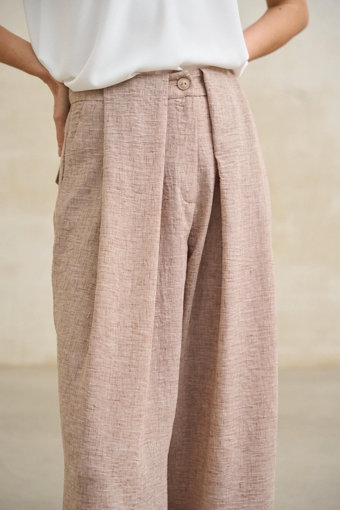 Este pantalón destaca por su silueta amplia y fluida, construida a partir de pinzas frontales que aportan estructura suave y volumen controlado. El cierre frontal con botón visible mantiene una estética limpia, mientras que la pernera larga y recta refuerza la sensación de ligereza. El tejido presenta una textura arrugada visible y uniforme, que añade profundidad visual y un acabado natural a toda la prenda. En clave de estilo, es una pieza de inspiración relajada con un punto elegante. Su fit amplio permite integrarlo fácilmente tanto en conjuntos más cuidados como en estilismos cotidianos, combinando con camisas ligeras, tops sencillos o prendas de punto fino. El color arena aporta luminosidad y suavidad, funcionando como base neutra para combinar con blancos, tonos tierra o contrastes más definidos. Diseñado para acompañar distintos momentos del día, este pantalón aporta confort y sensación de amplitud. Se lleva con naturalidad y se convierte en una base versátil para construir looks serenos, frescos y atemporales. Nos esforzamos por mostrar los colores de la forma más fiel posible, pero pueden variar ligeramente respecto a la realidad.