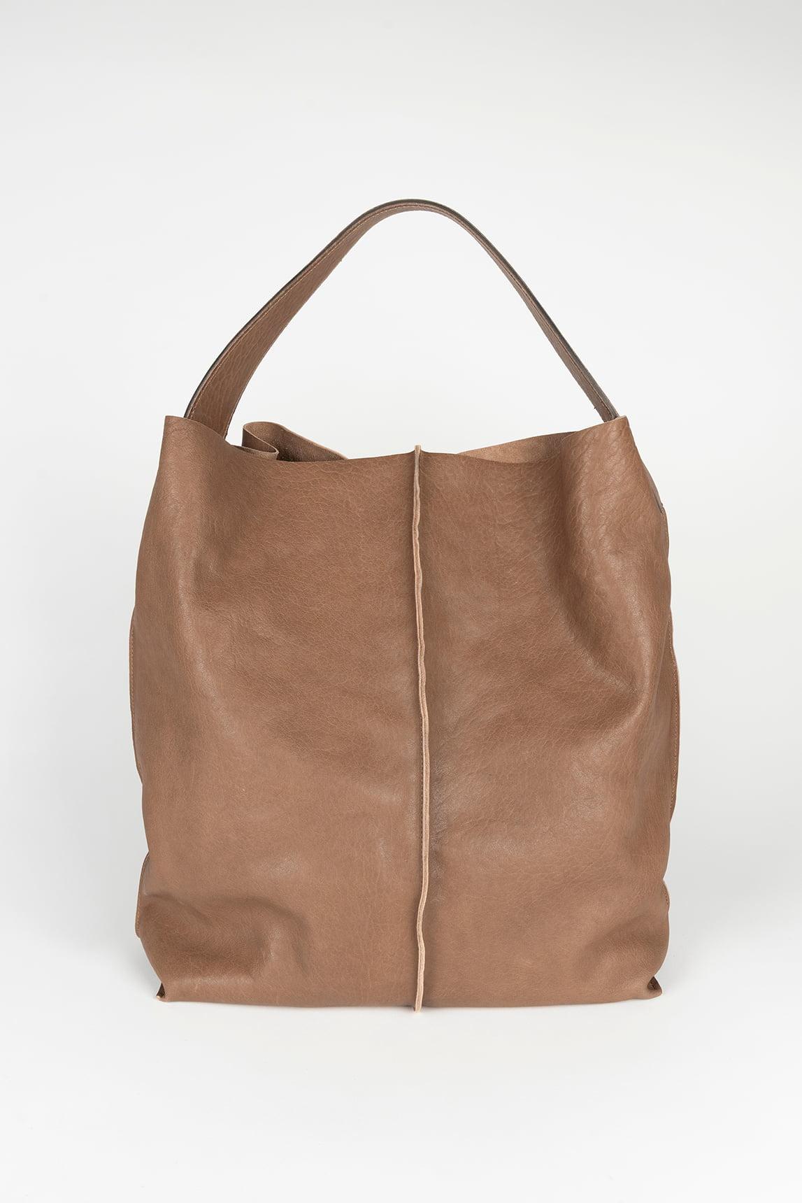 El tono topo aporta profundidad y elegancia discreta, convirtiéndolo en un bolso neutro ideal para combinar con negros, grises, blancos o tonos tierra. La estructura flexible favorece una caída natural que suaviza la silueta, mientras que el asa amplia permite llevarlo cómodamente al hombro durante toda la jornada.