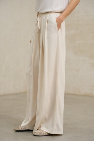 En términos de estilo, es una pieza esencial con un enfoque minimalista y versátil. Su fit amplio facilita combinaciones tanto con pantalones de líneas rectas como con faldas o prendas más estructuradas, generando equilibrio visual. El tono blanco aporta calidez y naturalidad, ideal para looks en clave neutra o combinaciones con tonos tierra y suaves.
