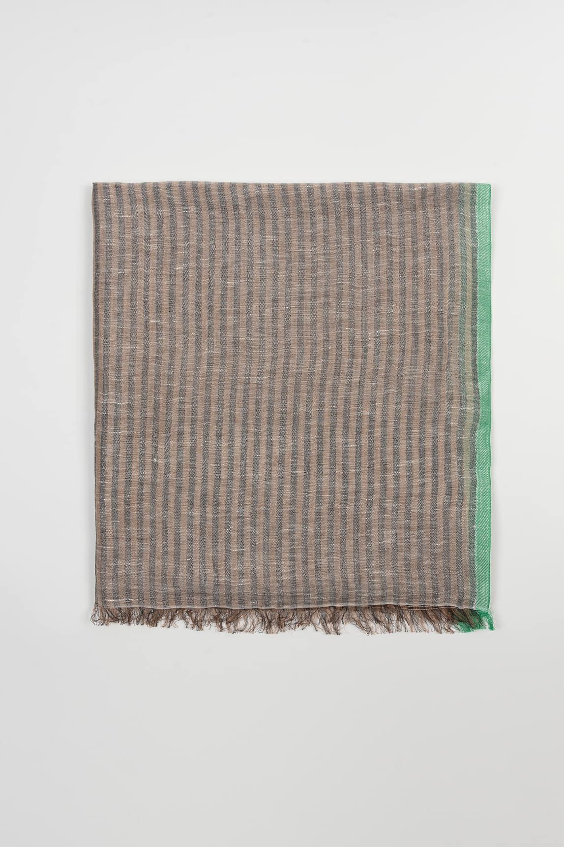 Fular de mezcla natural 53% algodón y 47% lino, ligero y agradable al tacto, con textura sutil y caída fluida. Presenta un diseño de rayas finas en tono topo y un ribete en verde menta que enmarca el contorno. Remata con flecos delicados en los extremos para un acabado desenfadado. De estilo fresco y natural, es perfecto para entretiempo: llévalo suelto sobre los hombros, anudado al cuello o como capa ligera en días de brisa. Aporta un punto de color suave y luminoso que eleva looks neutros y combina especialmente bien con blancos, arenas, denim y prendas en lino. Nos esforzamos por mostrar los colores de la forma más fiel posible, pero pueden variar ligeramente respecto a la realidad.