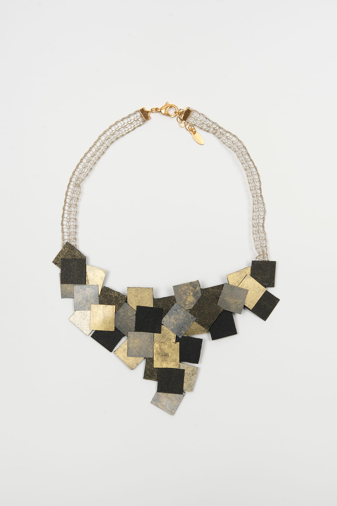 El Collar Mosaic bicolor de FL Private Collection destaca por su diseño contemporáneo y su equilibrio entre arte y elegancia. Las piezas metálicas en tonos dorado y negro se entrelazan sobre una delicada base de malla, creando un contraste moderno y sofisticado. Perfecto para elevar looks minimalistas o acompañar conjuntos de noche con un toque distintivo.