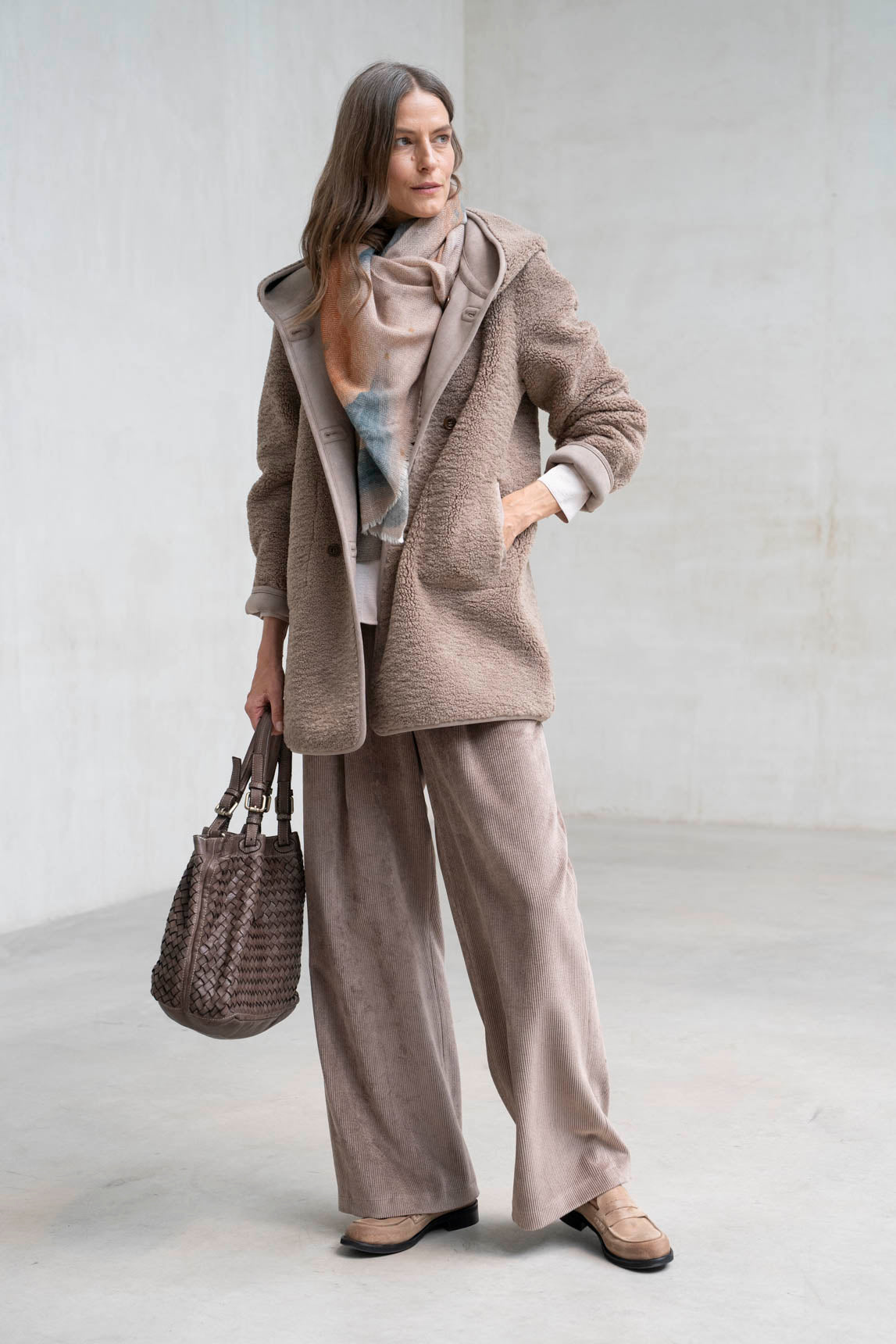 El abrigo Sirmione reversible topo combina calidez, versatilidad y diseño atemporal. Su doble cara te permite adaptarlo fácilmente a distintas ocasiones: un look más relajado con el lado de borreguito visible o un estilo más sofisticado con el acabado efecto ante. Ideal para los días fríos, este abrigo te acompañará tanto en outfits casuales como en combinaciones más elegantes. Con su capucha amplia y cierre de botones, es la prenda imprescindible de la temporada otoño-invierno.