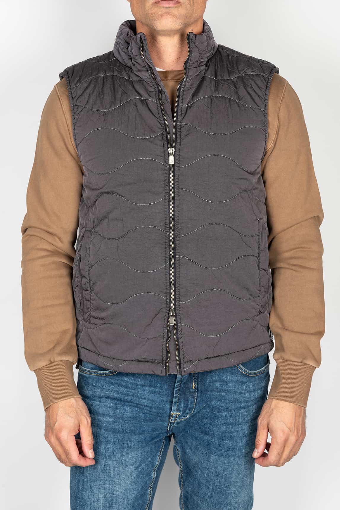 El chaleco acolchado en gris antracita es una capa versátil que aporta abrigo sin añadir volumen. Su diseño limpio y deportivo funciona en looks casual urbanos y como segunda capa bajo abrigos cuando baja la temperatura.