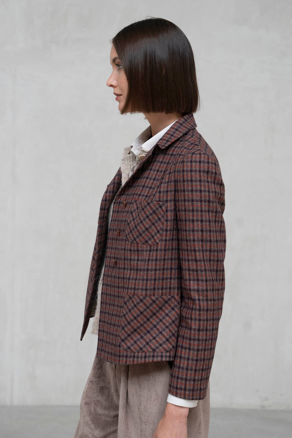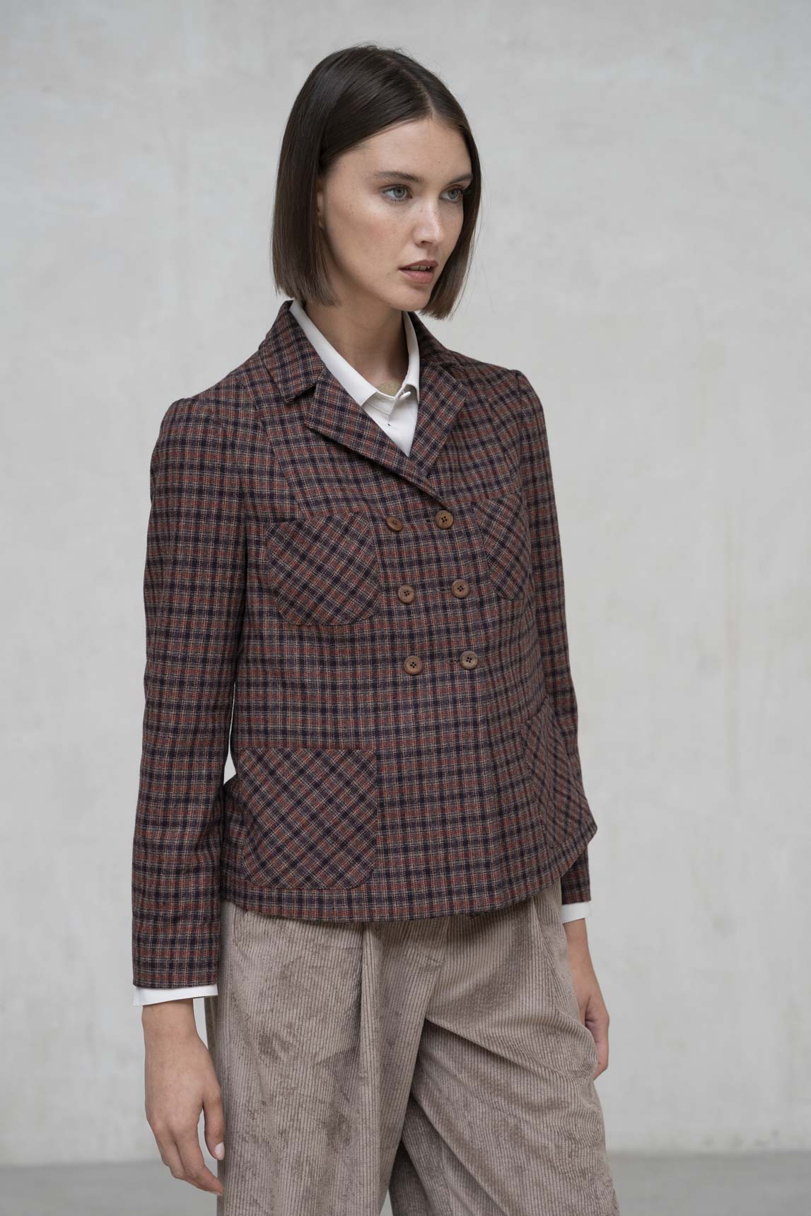 La chaqueta Ferrara cuadros burdeos combina el encanto del estilo sastre con un aire contemporáneo. Su estampado de cuadros en tonos cálidos y fríos la convierte en una prenda versátil para múltiples ocasiones. Ideal para llevar con pantalones de lana o pana en días frescos, o con vaqueros para un look más relajado pero con carácter. Una pieza clave para quienes buscan elegancia funcional en su armario.