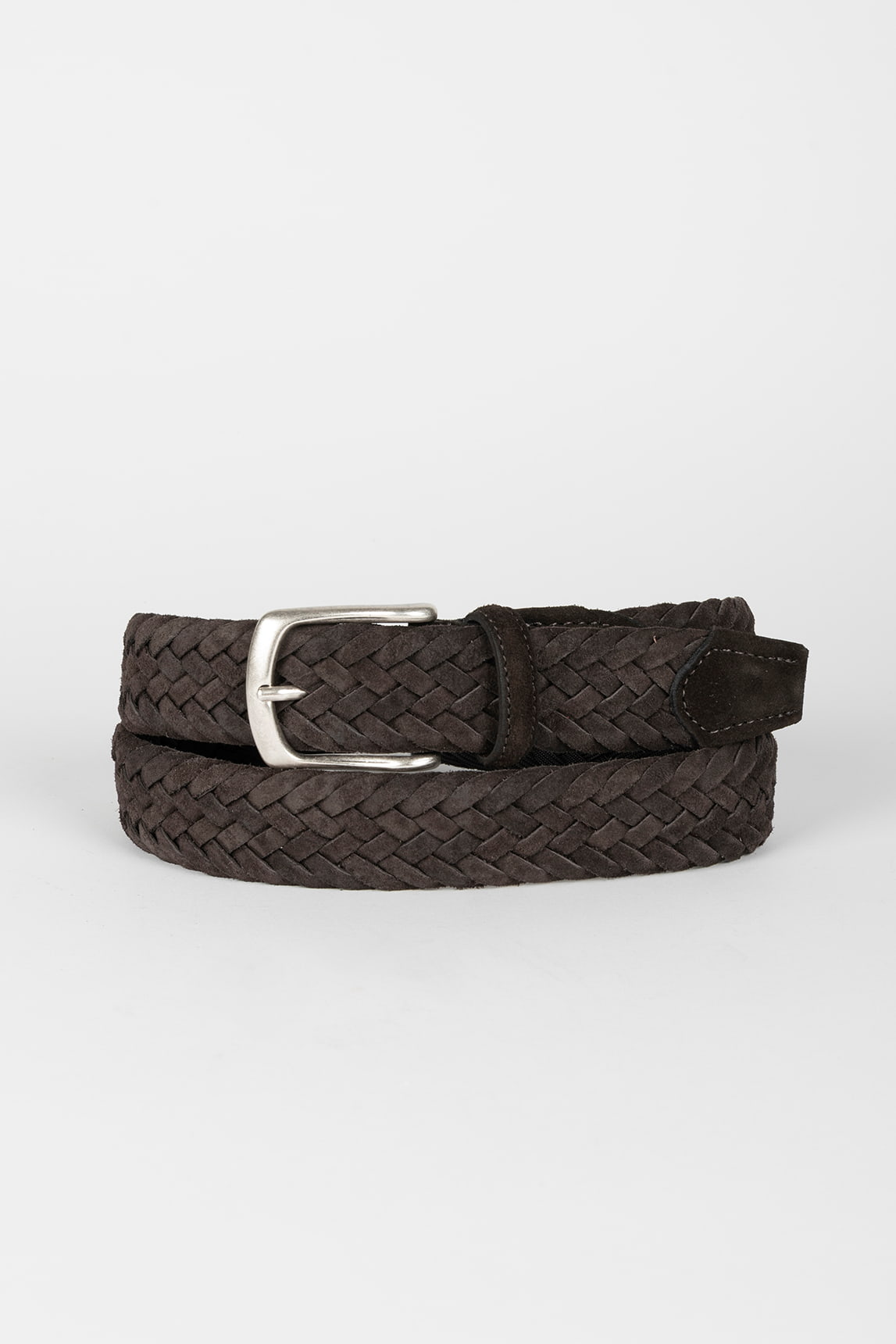 - Cinturón de hombre en serraje (ante) marrón oscuro.