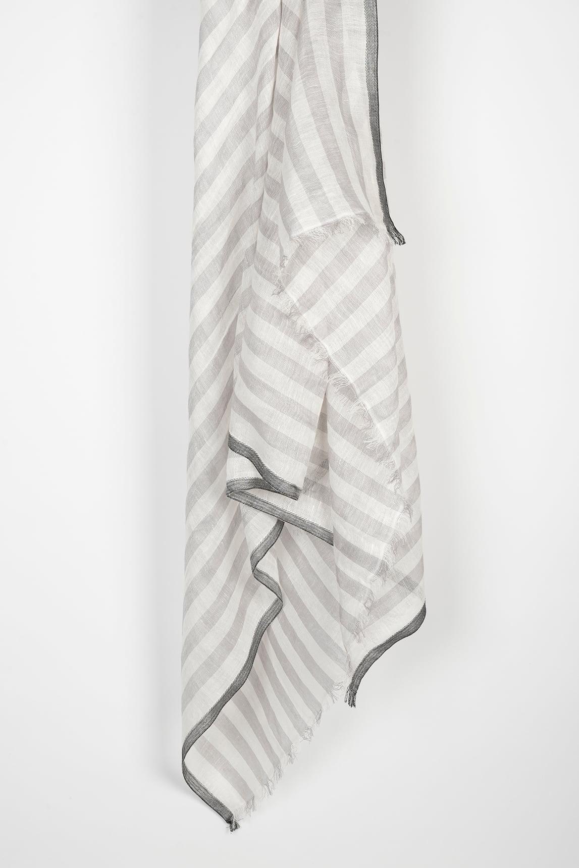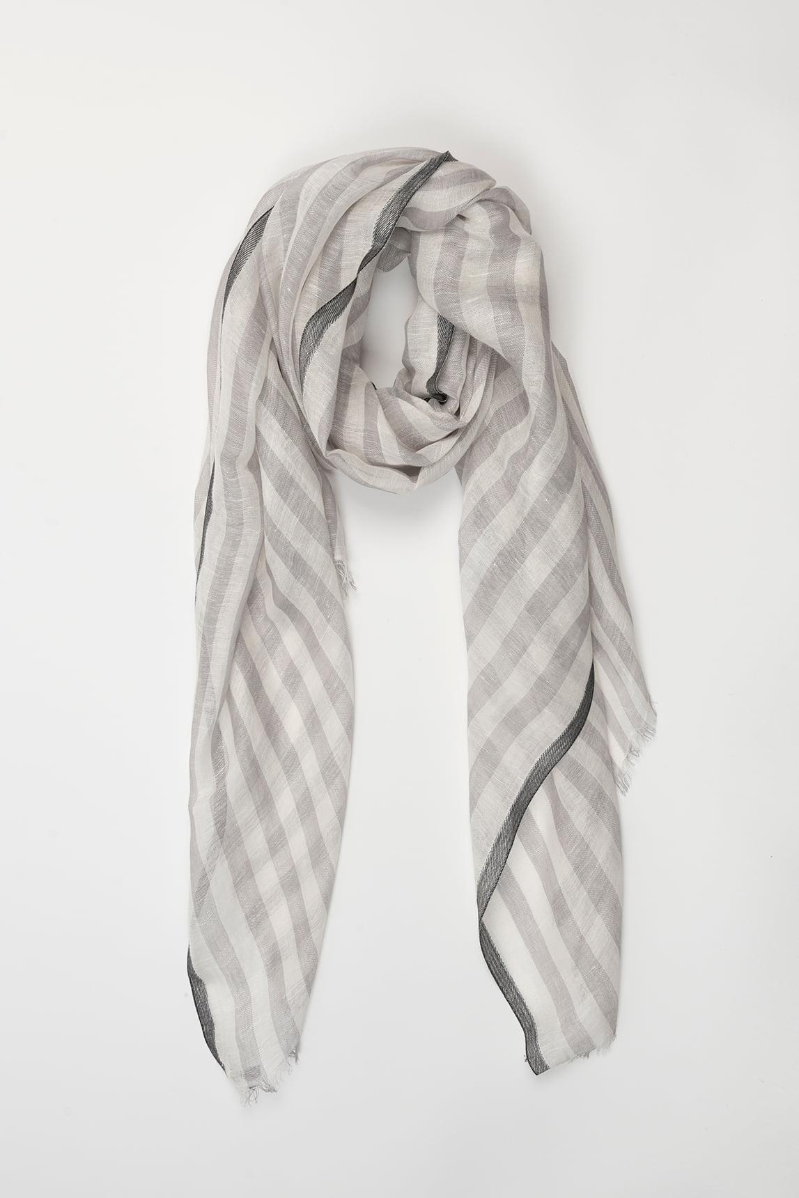 Fular de mujer confeccionado en una mezcla natural de 48 % algodón y 52 % lino. Su tejido ligero y transpirable presenta un diseño de rayas anchas en tonos gris claro y blanco, con un ribete en gris oscuro que enmarca el conjunto. Los extremos deshilachados aportan un acabado artesanal y relajado. El Fular Linoa gris destaca por su elegancia sencilla y su frescura natural. Perfecto para acompañar looks de entretiempo, combina fácilmente con prendas neutras o tonos suaves, aportando un toque de luminosidad y equilibrio. Nos esforzamos por mostrar los colores de la forma más fiel posible, pero pueden variar ligeramente respecto a la realidad.