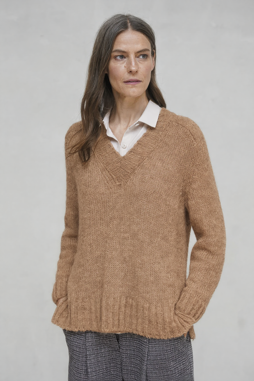 El jersey Specco camel es una prenda versátil y elegante, ideal para aportar calidez a tus looks de otoño e invierno. Su diseño con cuello pico realza el escote y permite superponer camisas o blusas, ofreciendo un aire más sofisticado. Confeccionado en un tejido de tacto suave y confortable, es perfecto para acompañarte tanto en tu día a día como en momentos de ocio. El tono camel, sobrio y atemporal, facilita la combinación con diferentes gamas cromáticas, convirtiéndose en un imprescindible de tu armario.