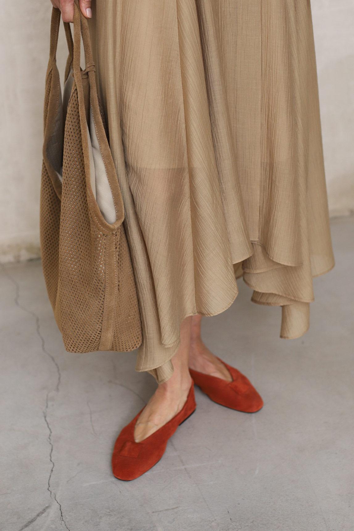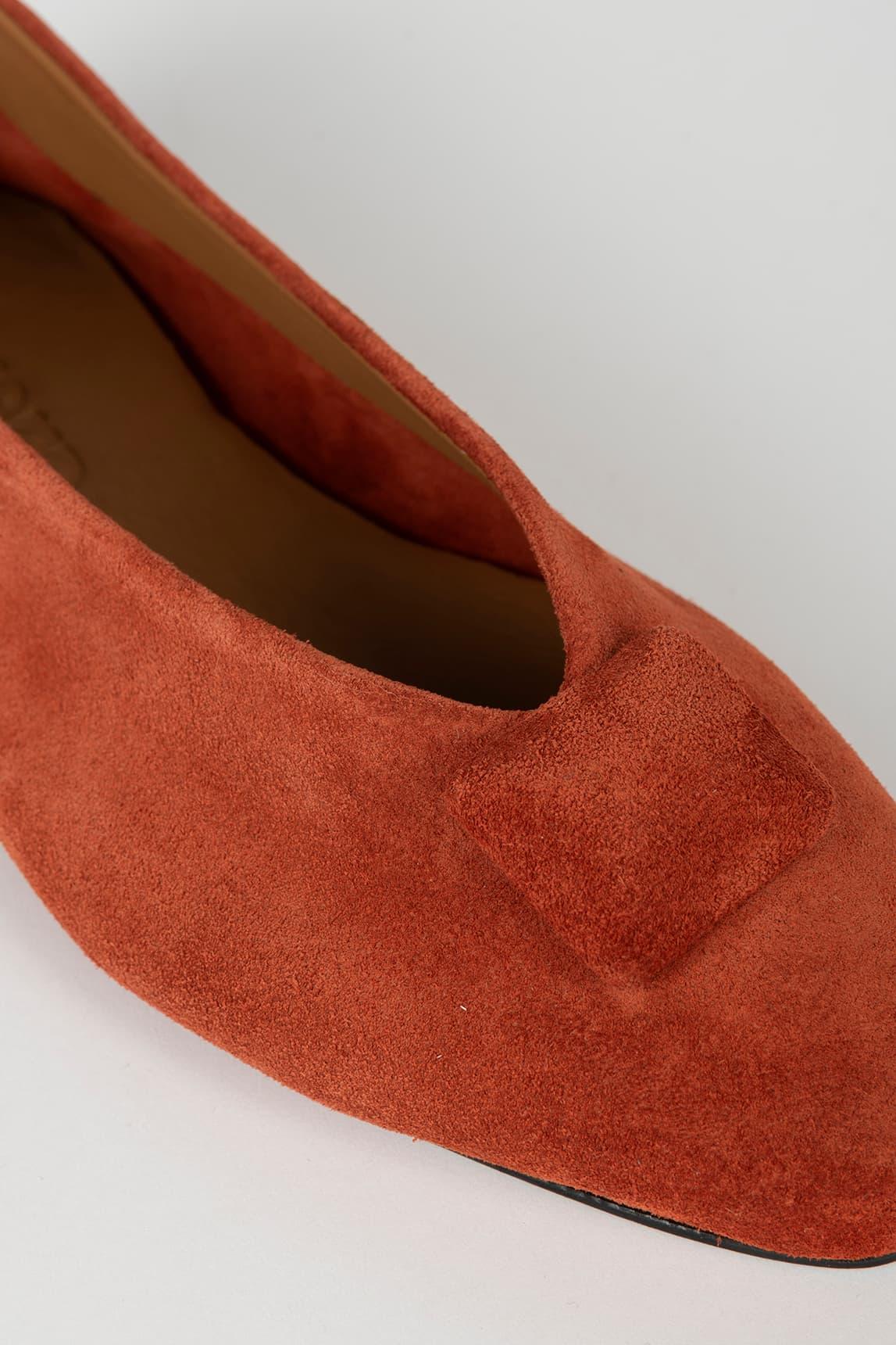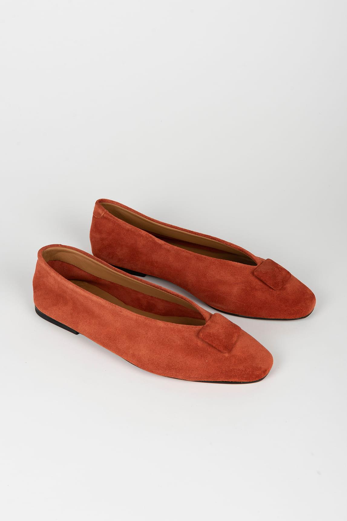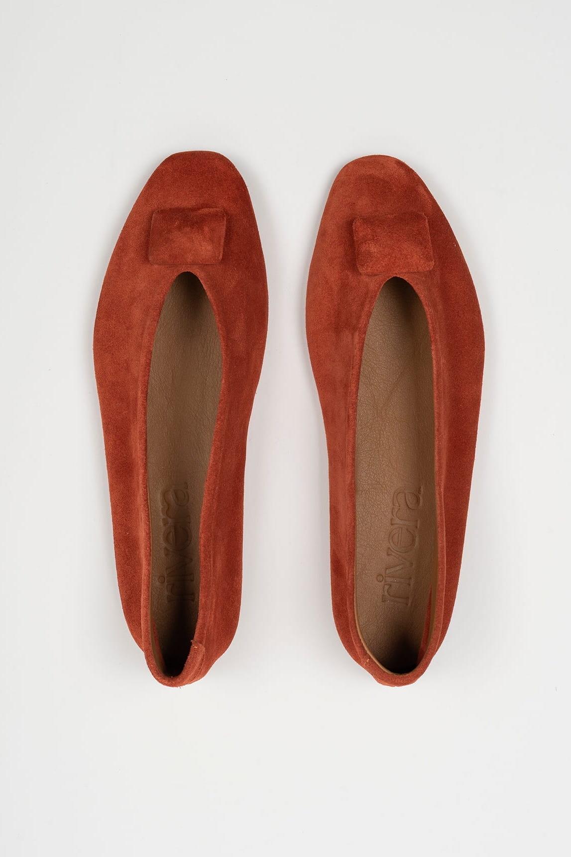 La manoletina Elvire Terracota presenta una silueta limpia y contemporánea con escote ligeramente estructurado que enmarca el empeine de forma elegante. El acabado en ante suave aporta textura y profundidad, reforzando su carácter sofisticado sin resultar excesivo. Su forma estilizada y su construcción flexible permiten un ajuste cómodo y natural al pie. La plantilla acolchada favorece una pisada confortable, ideal para el uso diario o para jornadas prolongadas en primavera y verano. El tono terracota, cálido y lleno de personalidad, aporta un punto de color refinado que combina especialmente bien con crudos, beige, verde oliva o estampados en tonos tierra. Una alternativa elegante al rojo clásico, perfecta para elevar estilismos neutros. Una manoletina ligera, femenina y atemporal que equilibra sencillez y carácter.