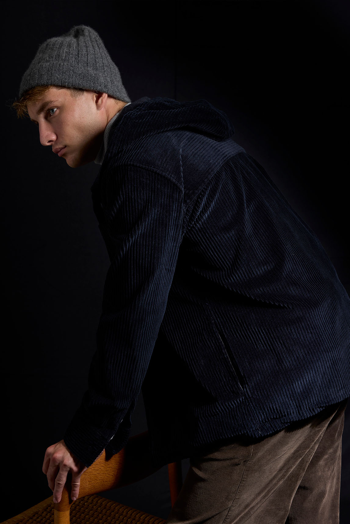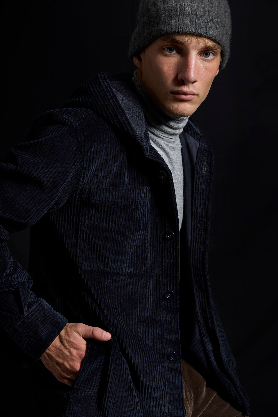 - Camisa tipo sobrecamisa en pana azul marino de canalé ancho.